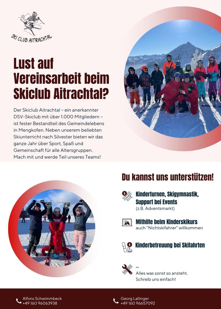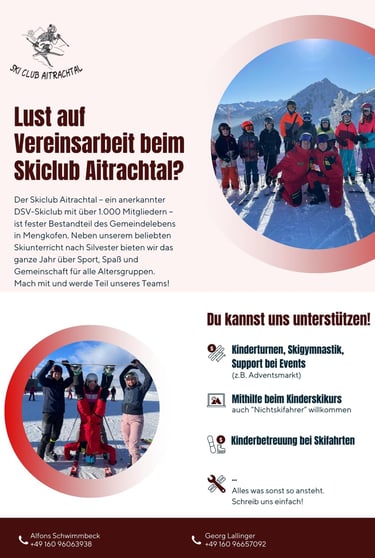 Der Skiclub Aitrachtal aus Mengkofen ist ein anerkannter DSV-Skiclub. Wir bieten eine Vielzahl von Aktivitäten und Veranstaltungen für Skibegeisterte aller Altersgruppen.